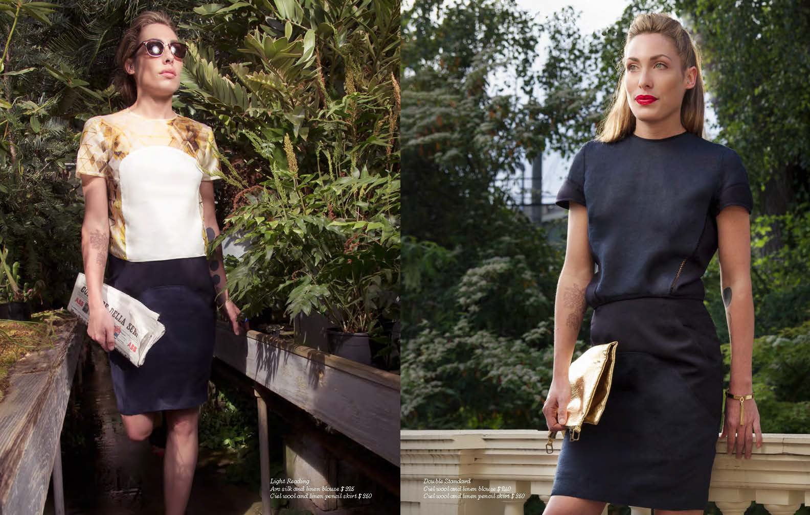 DESIGN, PATTERNMAKING, GRADING AND CONSTRUCTION OF A SIX PIECE CAPSULE COLLECTION INSPIRED BY GEOMETRIC ARCHITECTURE AND TRAVEL. STYLES WERE CONSTRUCTED IN ORGANIC SHAPES WITH NATURAL FABRICS